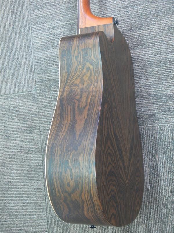 T270シリーズはトップ材に「AA Sitka Spruce」を、サイド&バックにオープン・ポアの「Mexican Snakewood」を採用し、ダイナミックかつブライトなサウンを提供します。ヘッド/指板/ブリッジには「Brownwood」を採用。
